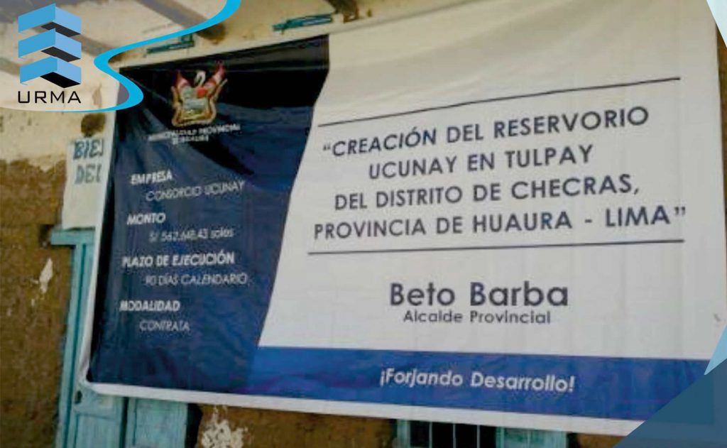 Contratación para la ejecución de la obra creación del Reservorio Ucunay en Tulpay, distrito De Checras, provincia de Huaura – Lima
