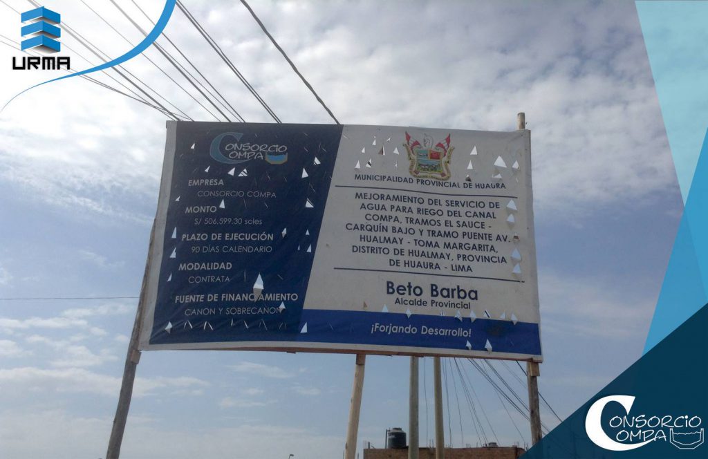 Contratación de ejecución de la obra Mejoramiento del Servicio de agua para riego del Canal Compa, tramos El Sauce – Carquín Bajo y Tramo Puente Av. Hualmay Toma Margarita Distrito De Hualmay – Huaura-Lima